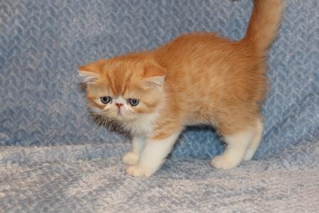 No. 311. 5 week old Red & White Exotic Shorthair female. This sweet girl's coloring is beautiful. She has so many gold highlights that the camera does not pick up. $1800. Sold. Steve W.